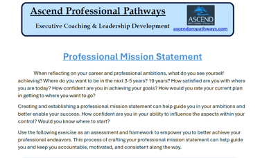 Creating and establishing a professional mission statement can help guide you in your ambitions and better enable your success. How confident are you in your ability to influence the aspects within your control? Would you know where to start?